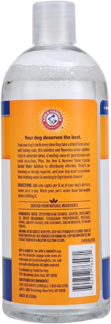 - HELPS FIGHT TARTAR — Arm & Hammer Dental Water Additive for dogs helps fight tartar with a baking soda-enhanced formula